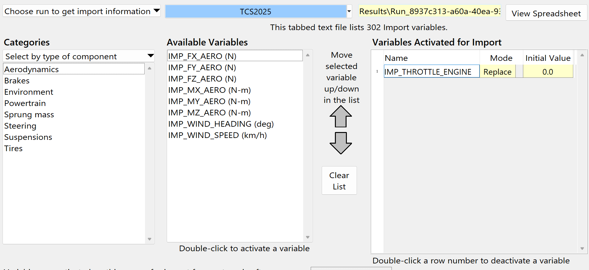 在这里就可以选择各种你想要控制的数据,双击需要的数据,将会把它添加到最右侧Variables Activated for Import栏。这个栏的顺序,就是Simulink中,输入向量的顺序。