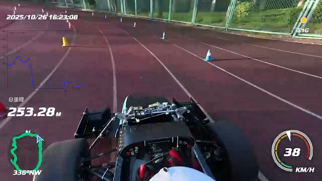 油门开度的曲线,和车载视角结合在一起,生成了一条视频,可以帮助车手训练,也可以帮助调整车辆设定,也可以作为算法优化的参考。
