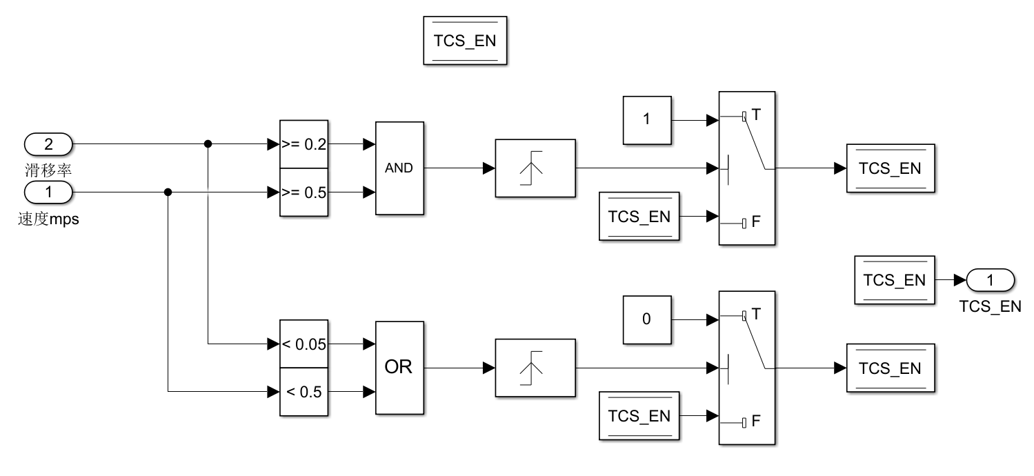 此外,每次TCS介入和退出,都不应包含上一次TCS算法的积分量。因此添加了一个积分重置信号,与TCS介入信号绑定,TCS介入瞬间,会将积分量清零。